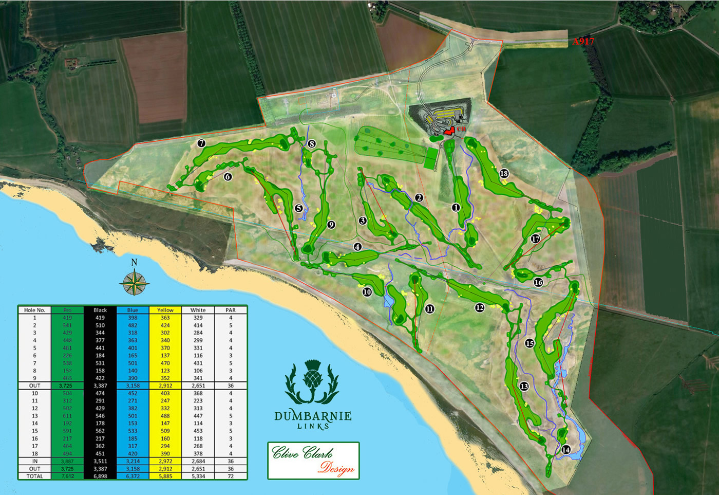 Dumbarnie Links is Scotland’s newest links course which is scheduled to open for play in 2020. Located 9 miles south of St Andrews, the layout plays over 345 acres, part of the 5,000-acre Balcarres Estate held by Lord Anthony Balniel and his family since the 16th century. Designed by Clive Clark, a member of the 1973 Great Britain and Ireland Ryder Cup team, the site is highlighted by a mile and a half of sea frontage featuring panoramic views over the Firth of Forth. Its dual elevations, which are connected by a flowing escarpment, provide a number of elevated tees where holes play directly towards the sea. The design incorporates three potentially driveable par-4s along with several holes that present tempting risk/reward opportunities. This course is designed to inspire rather than intimidate golfers. Total yardage will vary from 5,300 to 6,900 yards.